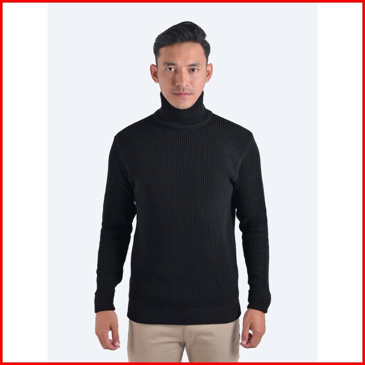 Sweater Rajut Pria Gomuda Cord Turtleneck Black