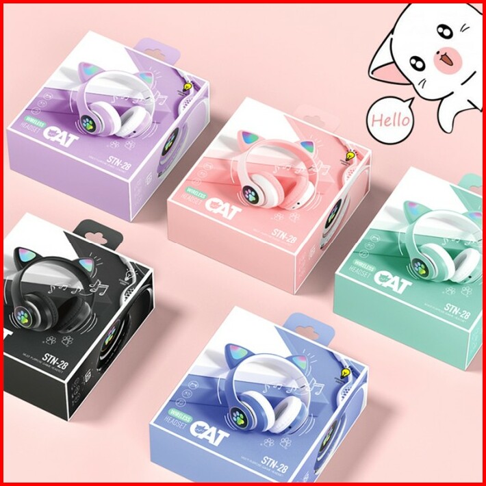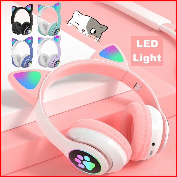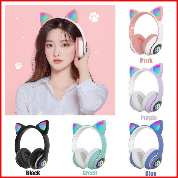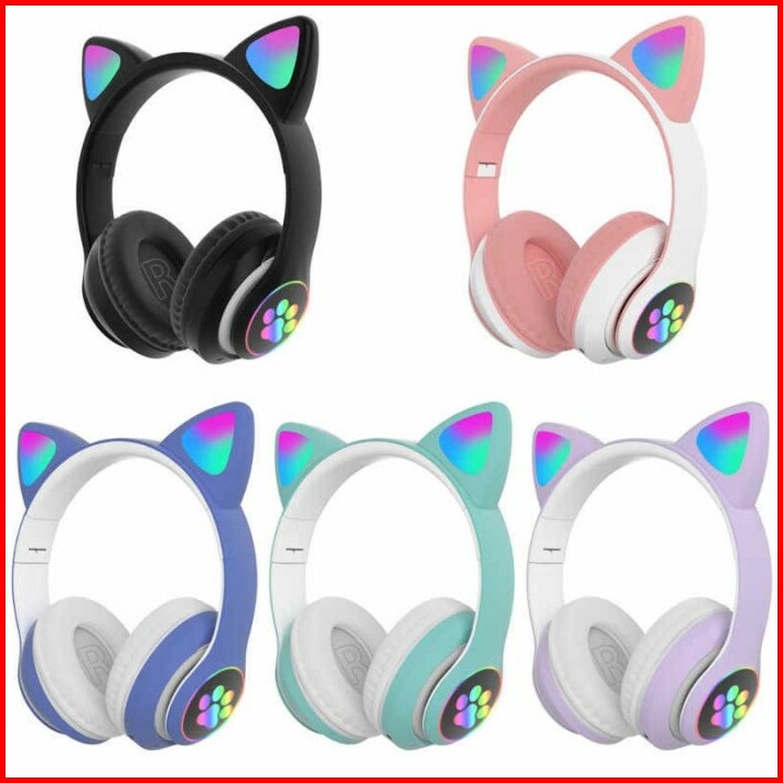 Headset Bluetooth Motif Telinga Kucing Stn Headphone Cat Ear Pink Zoom