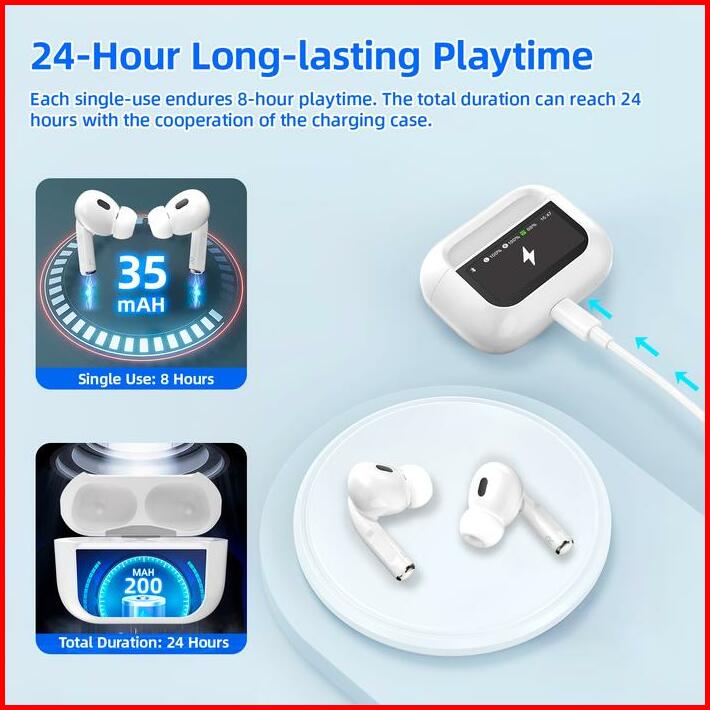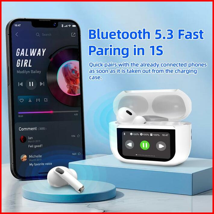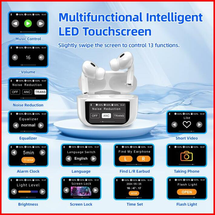 Cuci Gudang Goojodoq J222 Lcd Touchscreen Anc Tws Bluetooth Headset Earphone Touch Screen V5.4 Smart Screen Active Noise