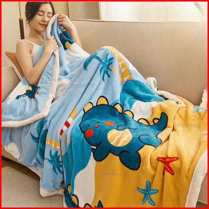 Selimut Dewasa Bulu Halus 140x200 Motif Dino Lucu Keren Cantik Murah Asriyasashii Terlaris Berkualitas Kado Kain