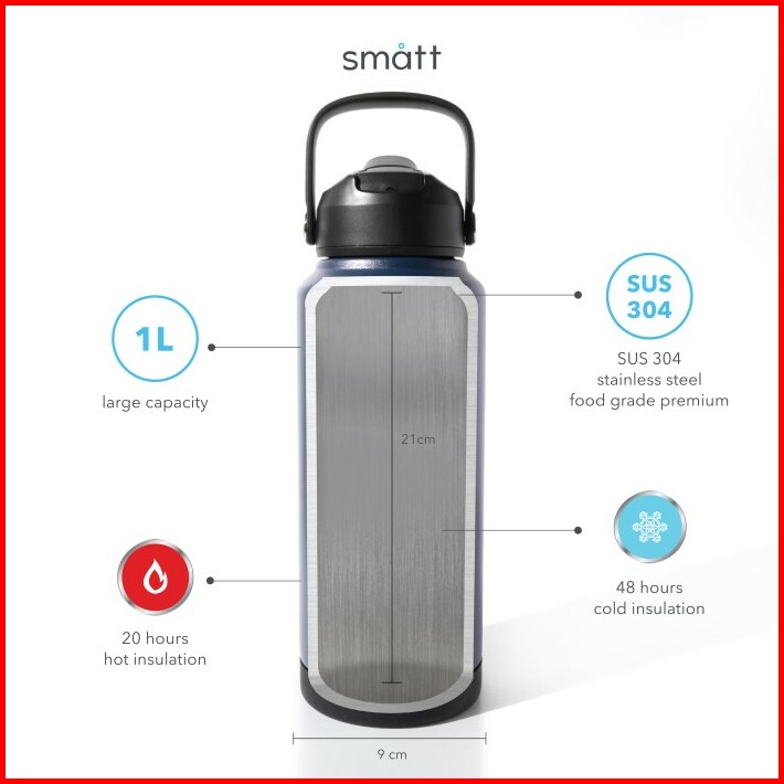 Smatt Double Insulation Bottle Termos 1 Liter Tumbler Stainless 1000ml