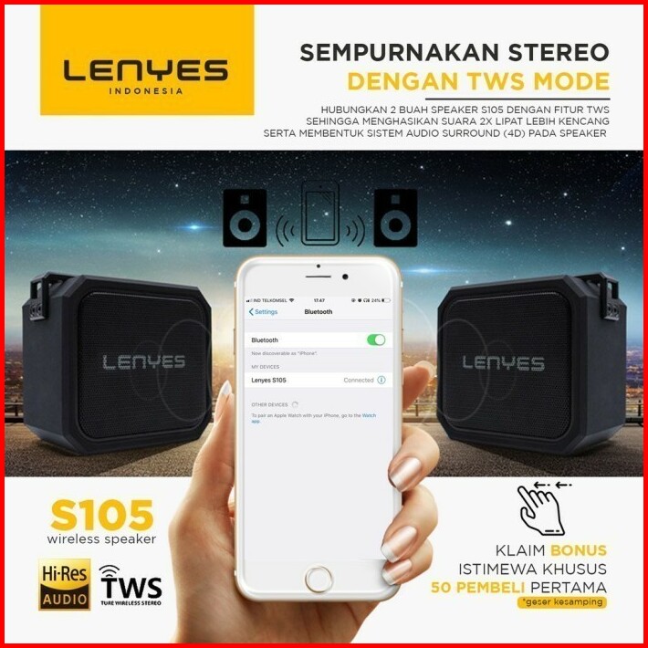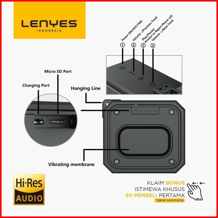 Speaker Bluetooth Portable Lenyes S105 Outdoor Wireless Extrabass Wate