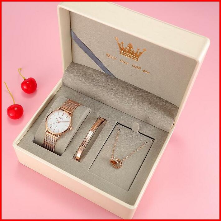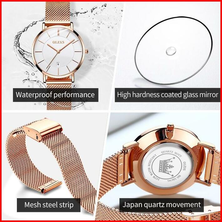 Olevs Jam Tangan Wanita Set Kalung Gelang Original Asli Untuk Tahan Air Rose Lady Girl Watch 5869 Arloji Kaca