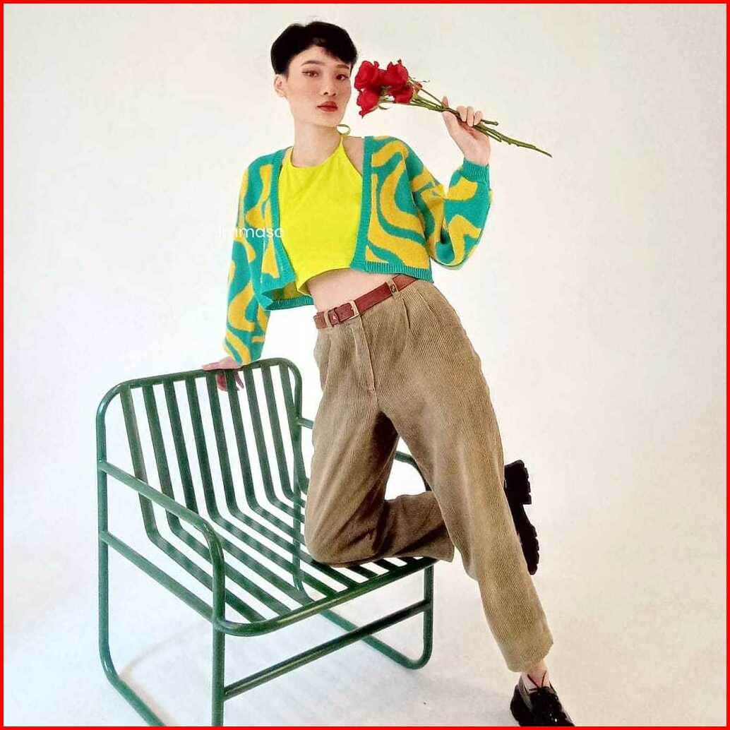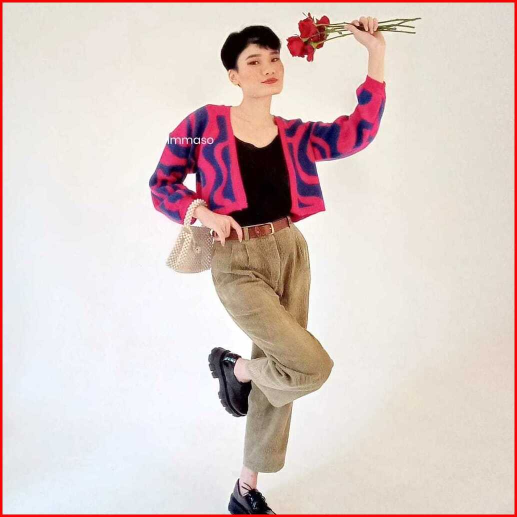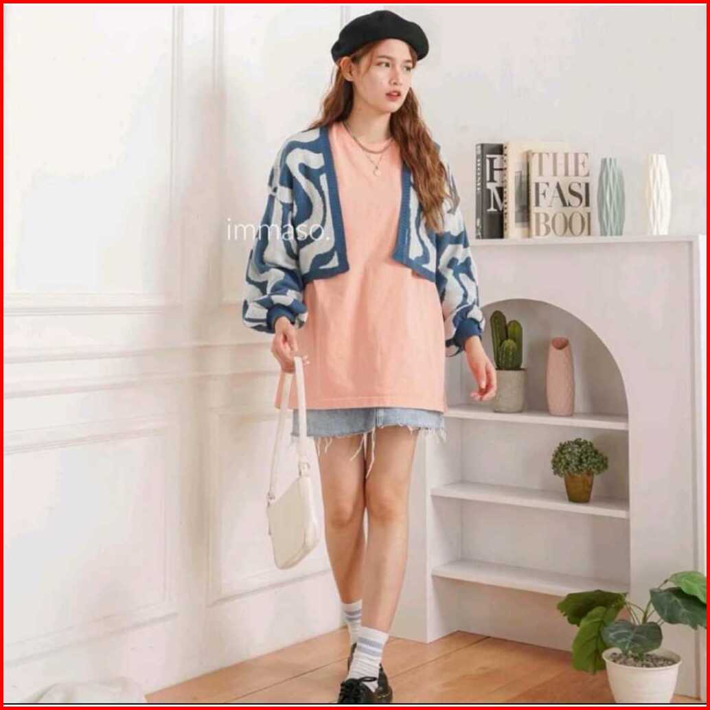 Outer Cardigan Crop Top Areum Rajut Komputer Motif Abstrak
