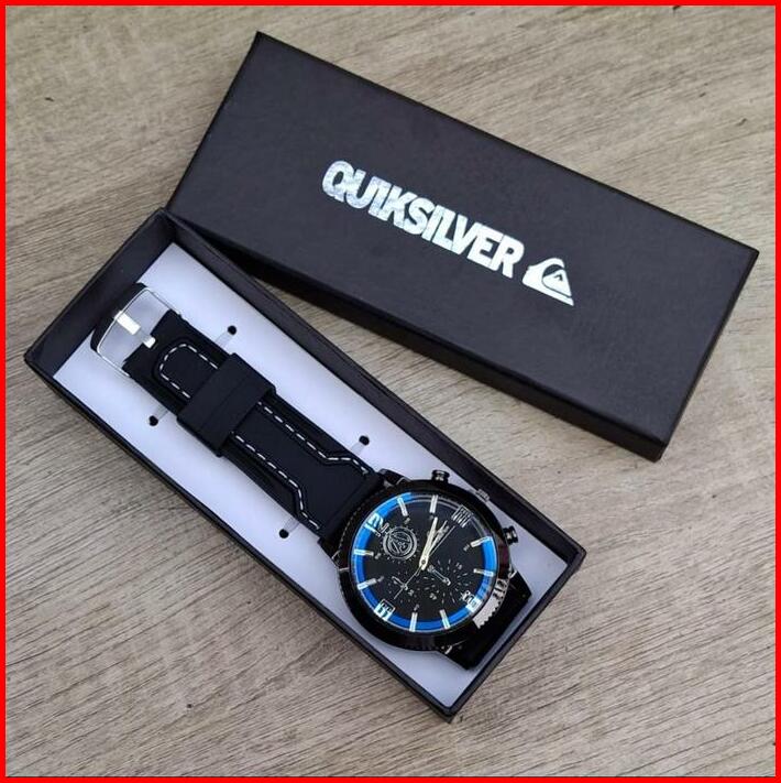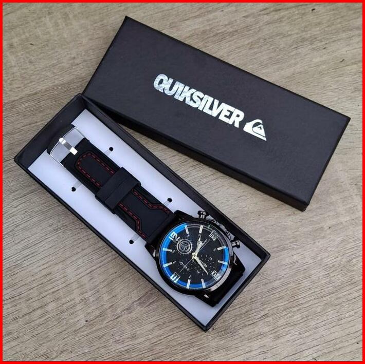 Free Gelang Jam Tangan Kasual Analog Pria Tali Rubber Chrono Variasi Body Bulat Stainless Steel Anti Air