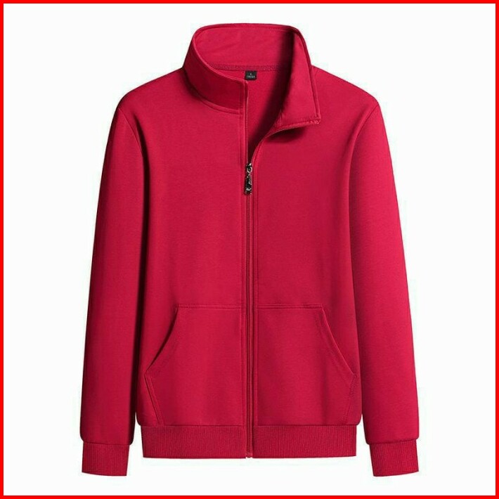 Jaket Sweater Pria Kerah Tinggi Tanpa Hoodie
