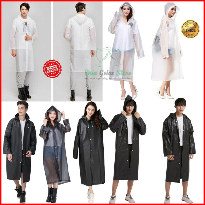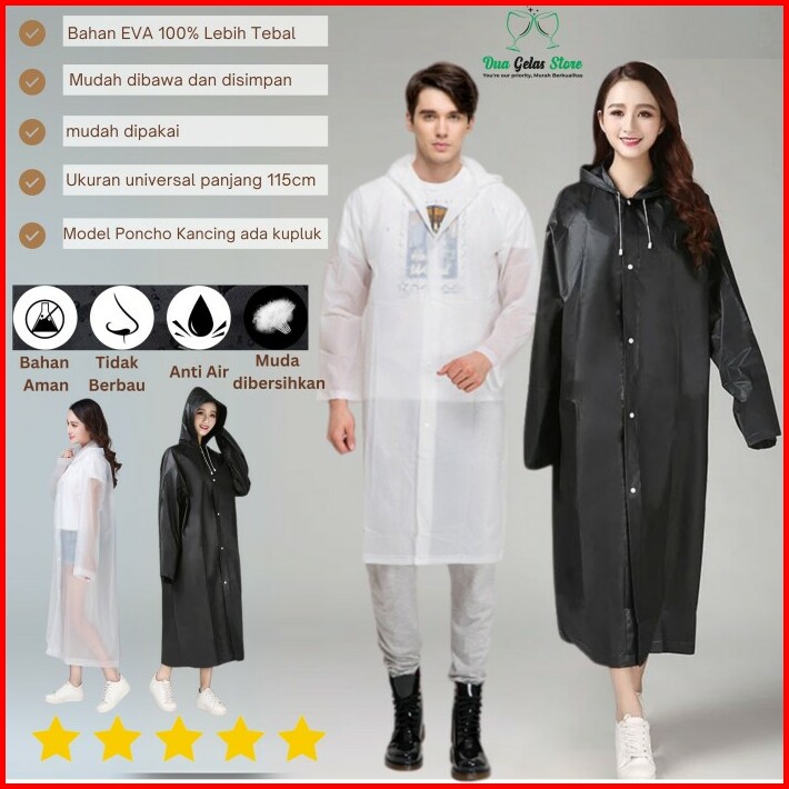 Jas Hujan Ponco Transparan Eva Terusan Korea Wanita Pria Hoodi Dewasa