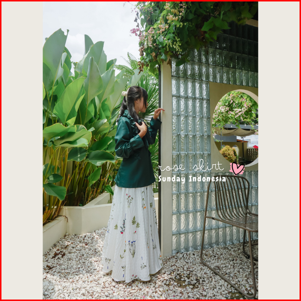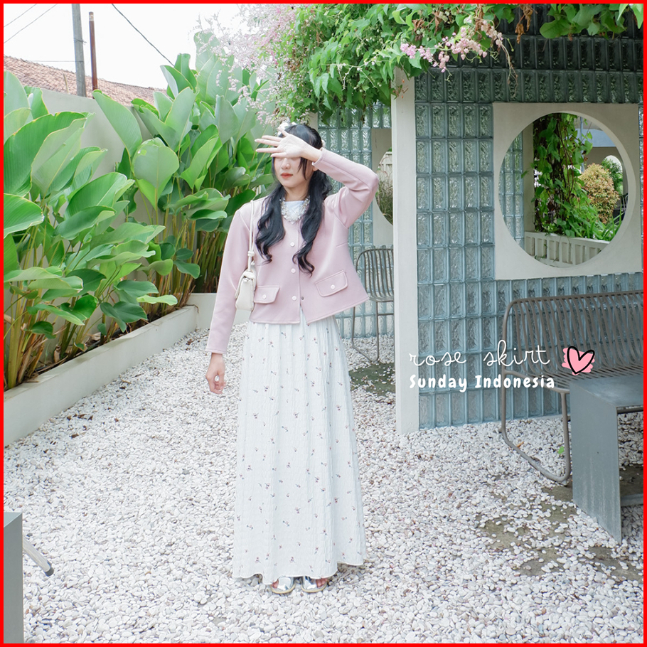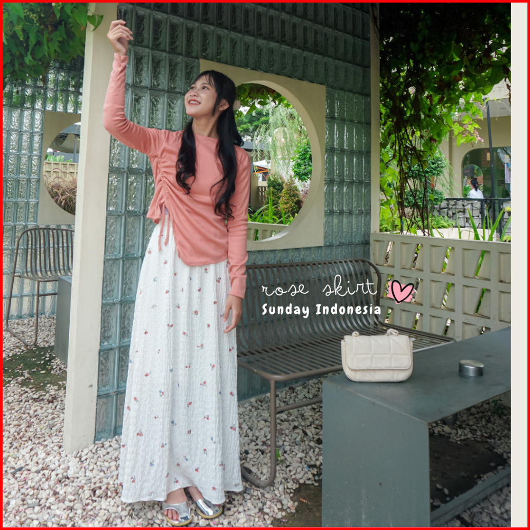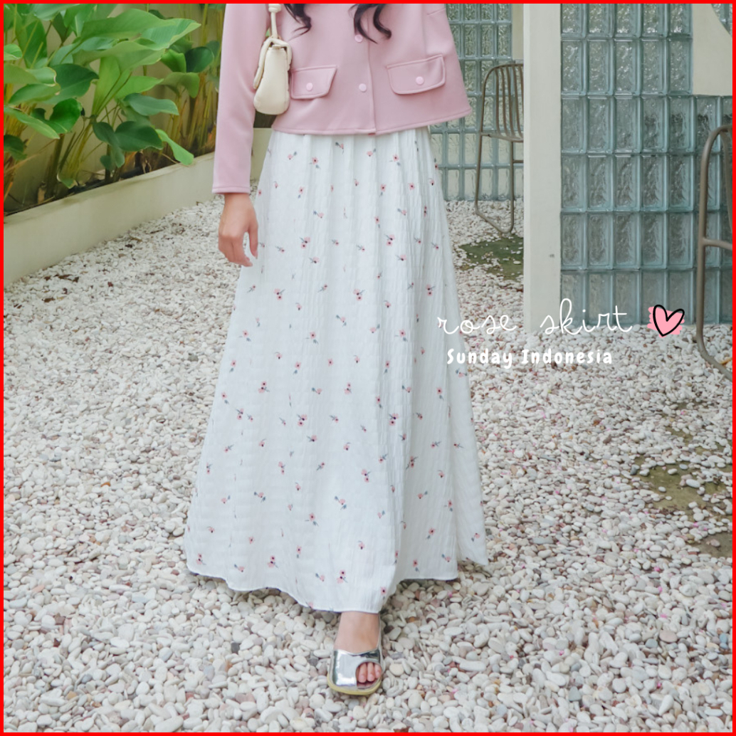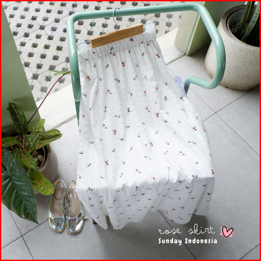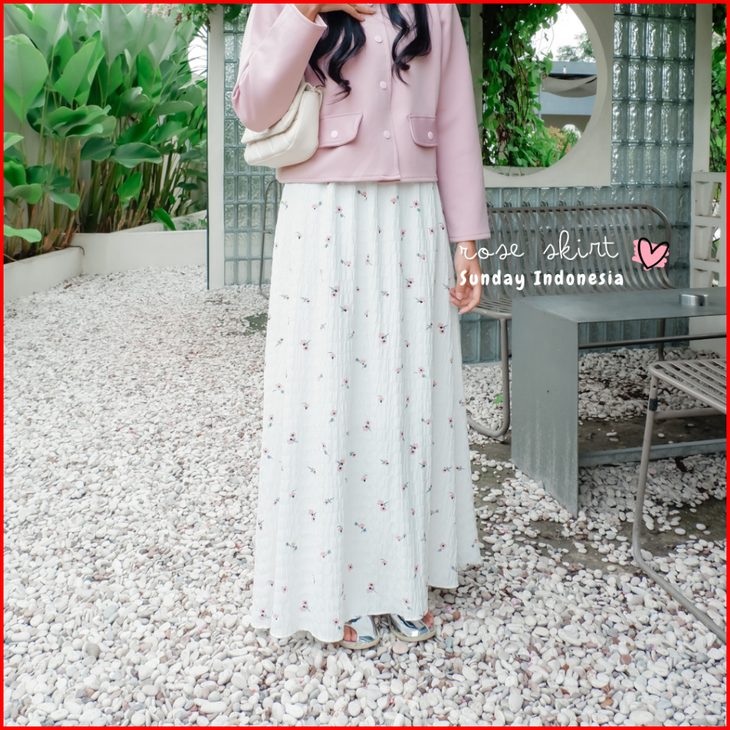 New Rose - Rok Flowie Panjang - Rok Korea Texture - Rok A Line Korean Style - Korean Skirt - Rok Putih Premium Sunday In