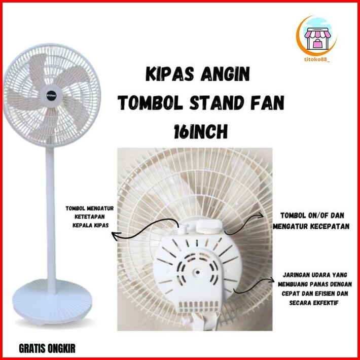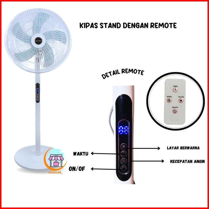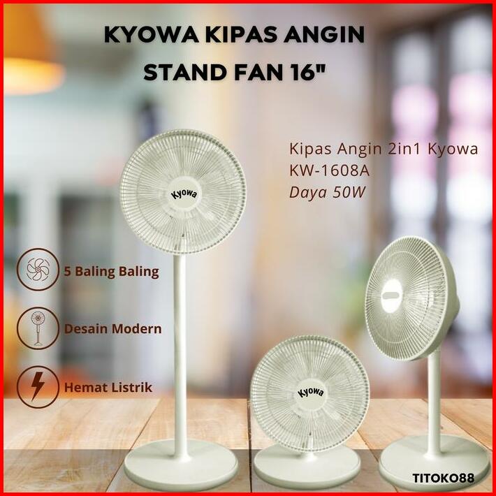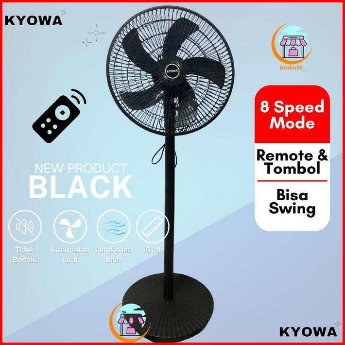 Kipas Angin Standing Kyowa Kw-1608a Kipas Berdiri 2in1 5 Baling Baling Kipas Remote Desain Modern