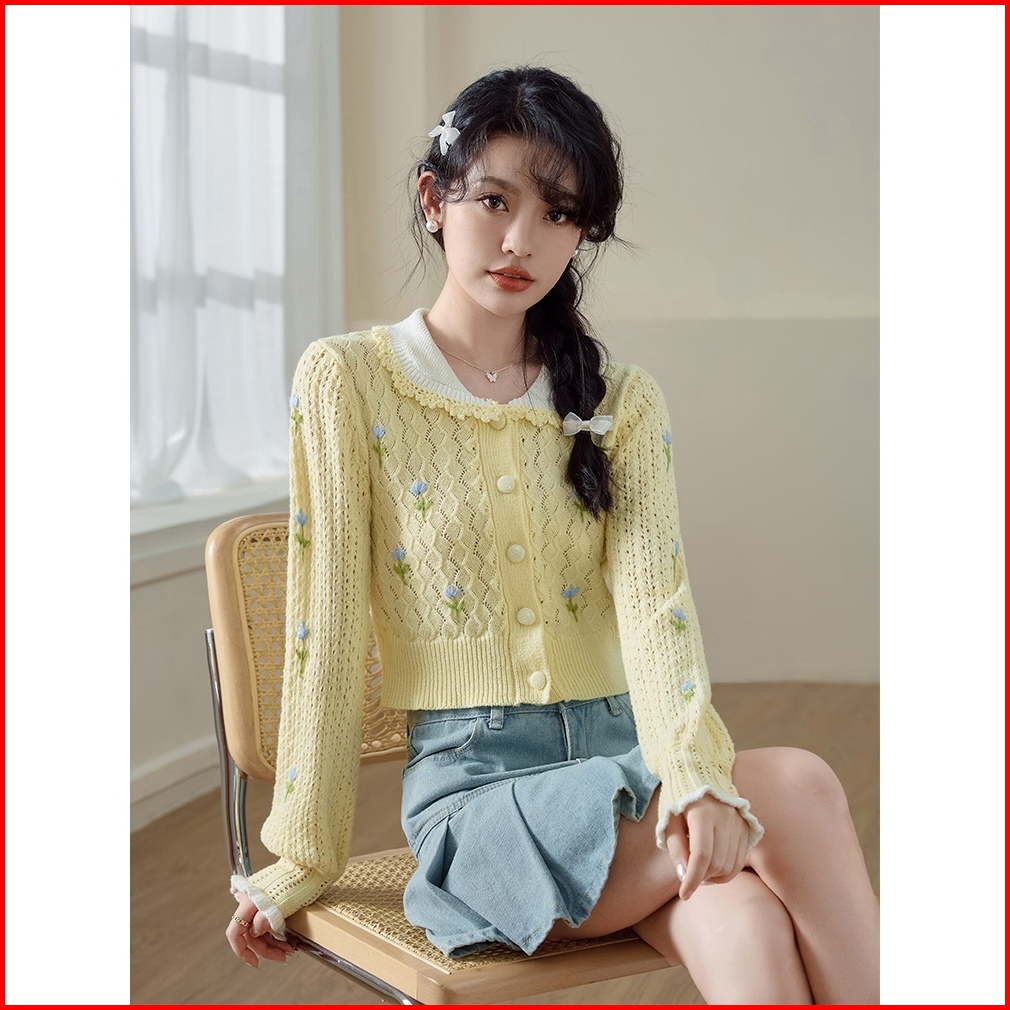 Sixi Cardigan Rajut Cute Cardigan Rajut Motif Bunga Peony Outer Knit Soft Gaya Manis