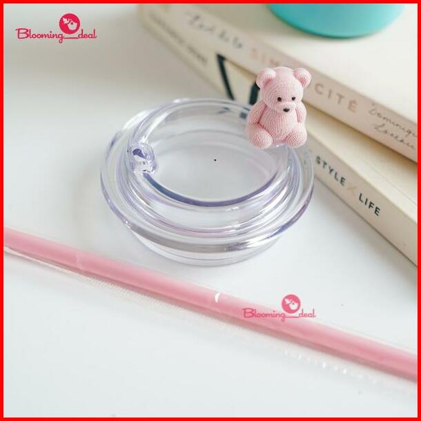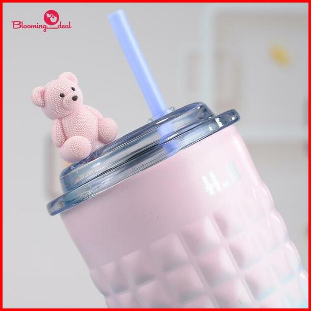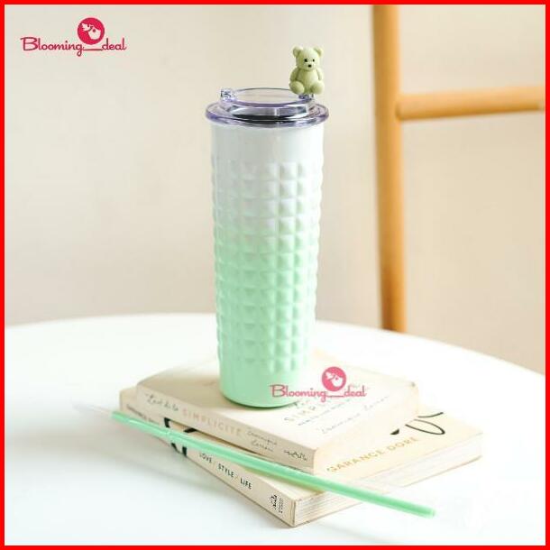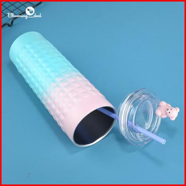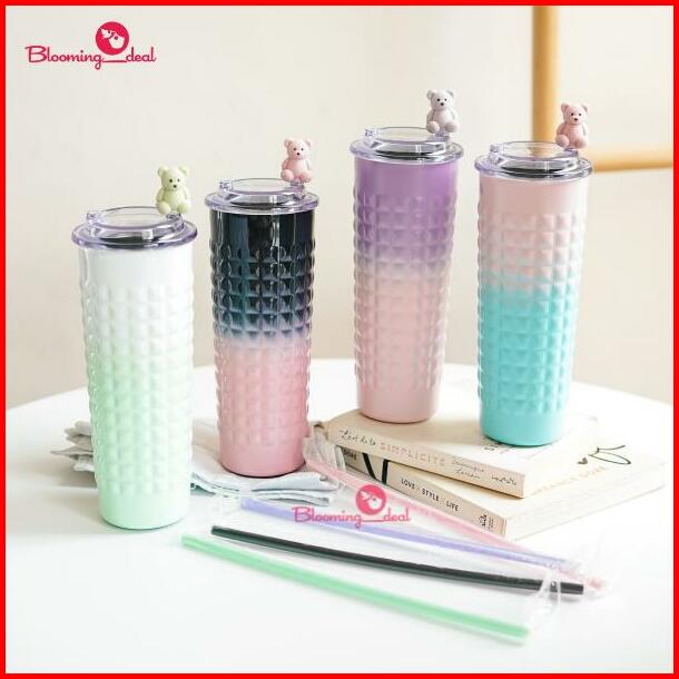 Tumbler Gelas Stainless Steel Motif Diamond Bear Gradasi Dengan Sedotan 700ml Hn8001