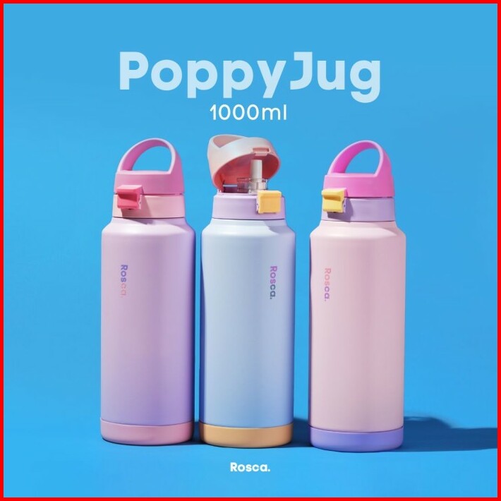 Rosca Poppyjug Tumbler Stainless 1 Liter Botol Minum 1 Liter Tahan Panas Dingin Portable Stainless Steel Tumblr