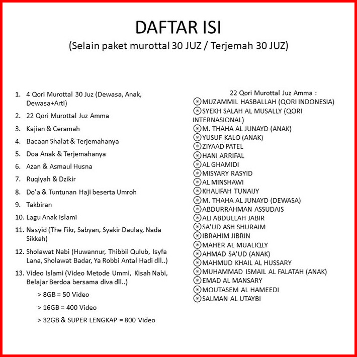JUZ AMMA, MUROTTAL 30JUZ, TERJEMAH 30JUZ, 8GB, 16GB, 32GB, SUPER LENGKAP