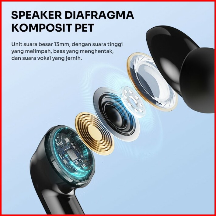 Robot Tws Earphone Airbuds T70e Deep Bass Bluetooth 5.4 Original