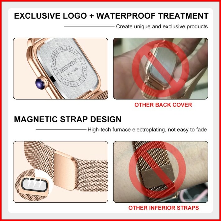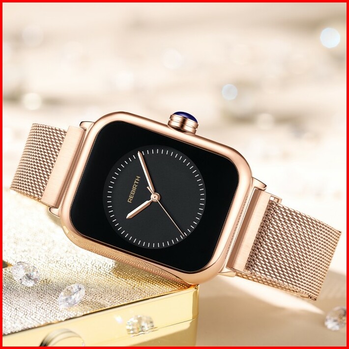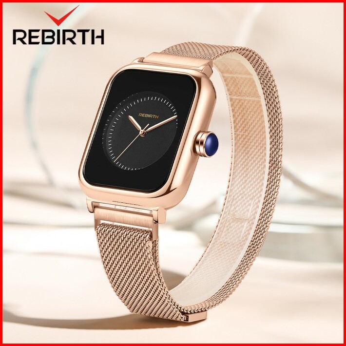 Rebirth Jam Tangan Wanita Anggun Santai Tali Jala Tahan Air Kuarsa Jam