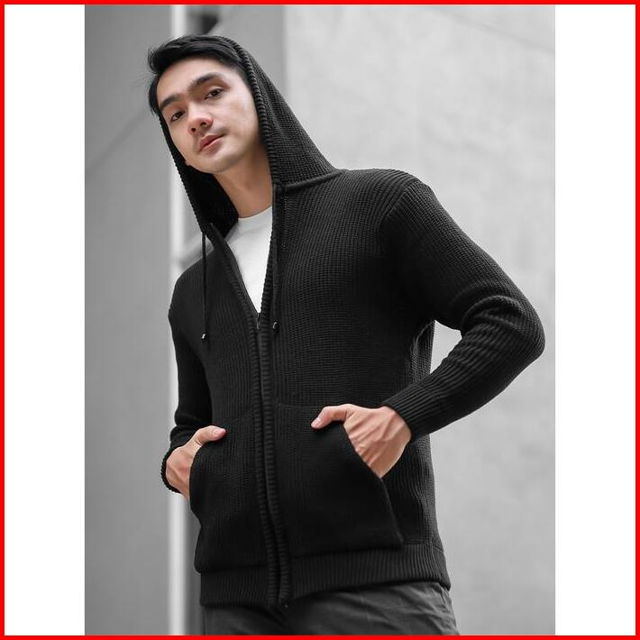 Gomuda Sweater Rajut Pria Hoodie Full Zip Knitwear Lengan Panjang