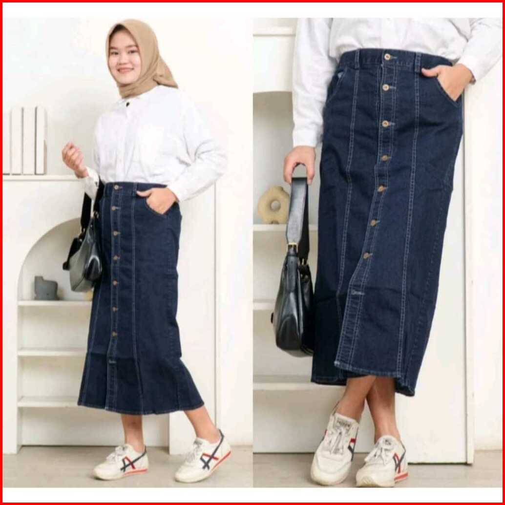 Rok Jeans Strect Rok Jeans Panjang Rok Jeans Terbaru Rok Polos Jeans Jumbo