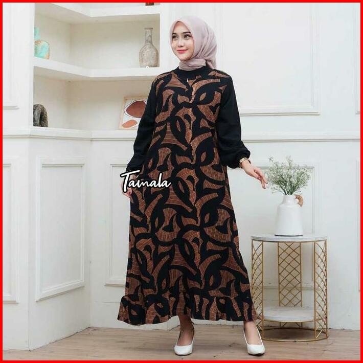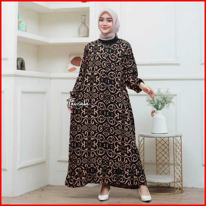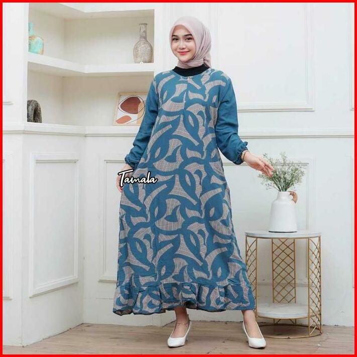 Daster Terbaru Dress Rayon Rempel Busui Lengan Panjang Kekinian Midi Motif Wanita Bumil Katun