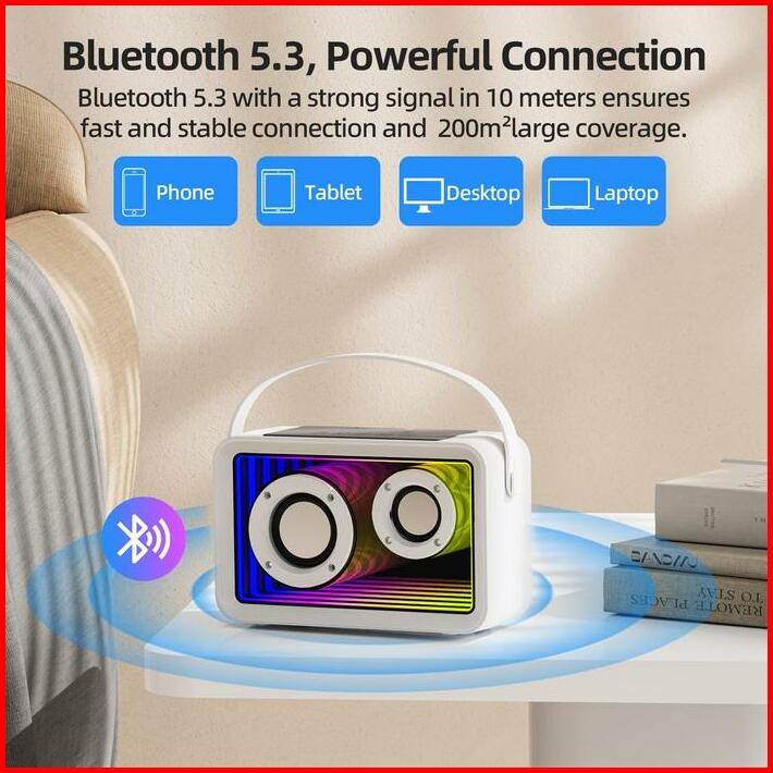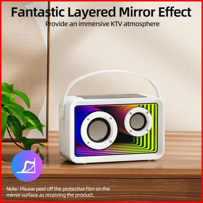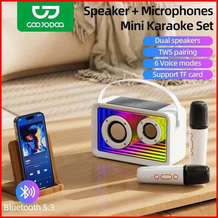 Goojodoq Premium Speaker Bluetooth 2mic 1 Set Karaoke Speaker Layered Mirror Led Light Ktv Wireless Portabel Luar Ruanga