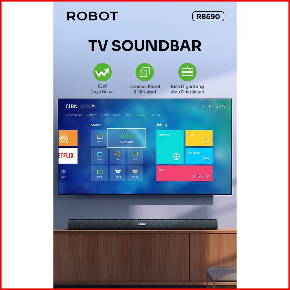 Robot Rb590 Soundbar Bluetooth Speaker Bass Tv Pc Aux 3.5mm Micro Sd