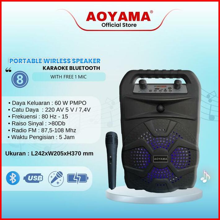 Speaker Bluetooth 8 Inch Aoyama Ao-888 Mic Karaoke Speaker Pertable Speaker Aktif Salon 8 Inch Aoyama