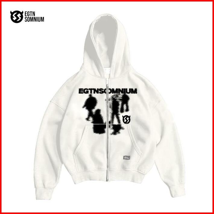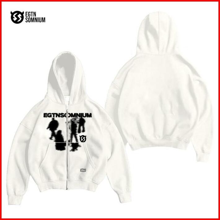 Hoodie Boxy Zipper Dizzi Egtnsomnium Jaket Distro Pria Dan Wanita Keren Flecee 280 Gsm Putih Tebal Sweater Cowok Dan Cew