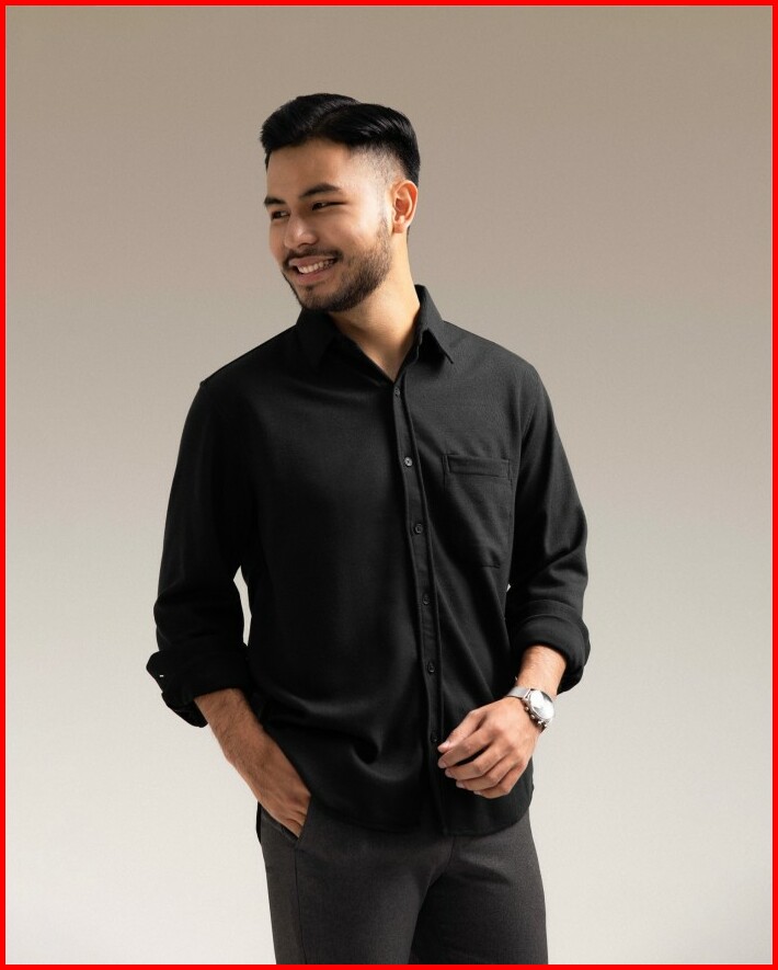 Broodis Kemeja Polos Softee Black Lengan Panjang Slimfit