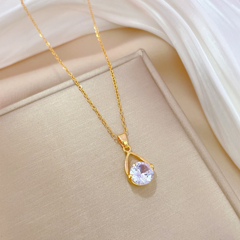 Sederhana berkualitas tinggi waterdrop zircon anti-karat titanium alloy kalung wanita sehari-hari memakai kalung baja ti
