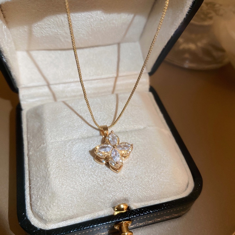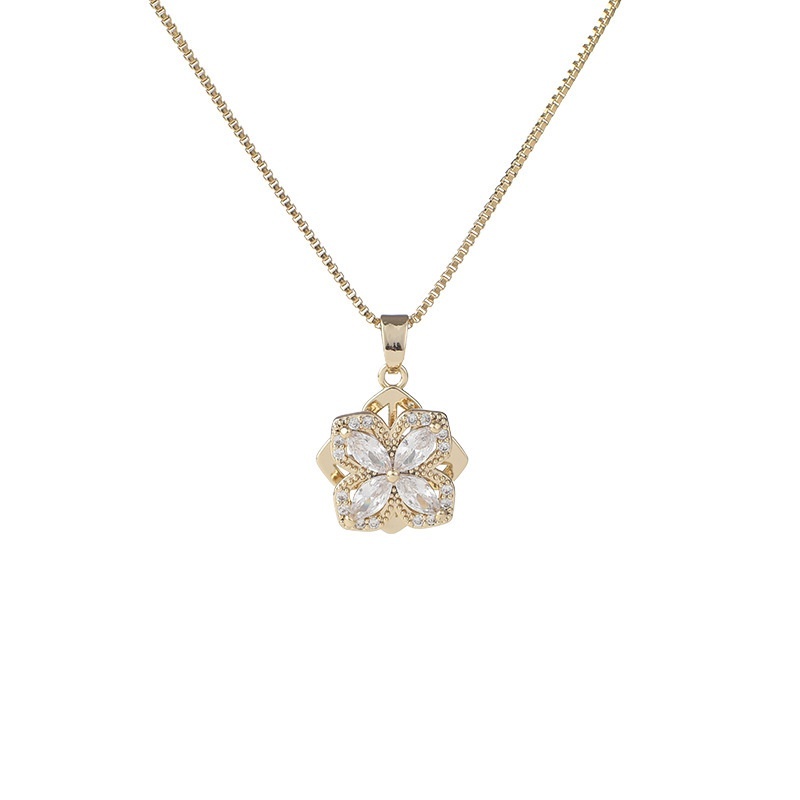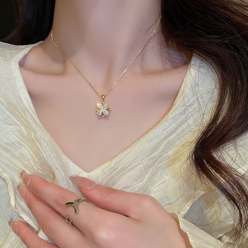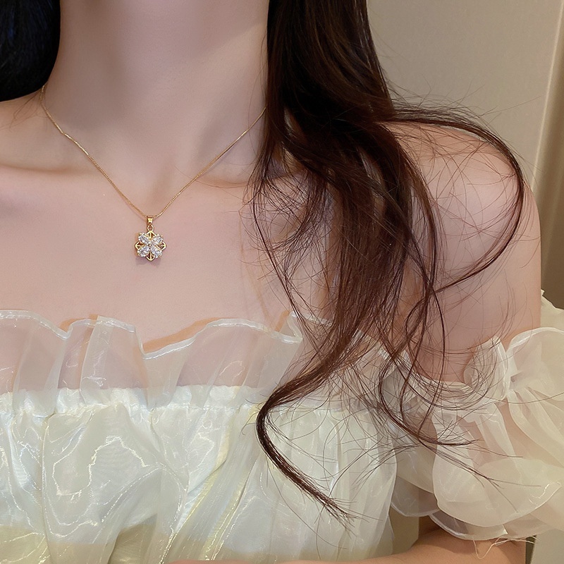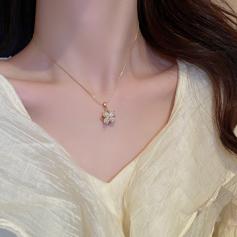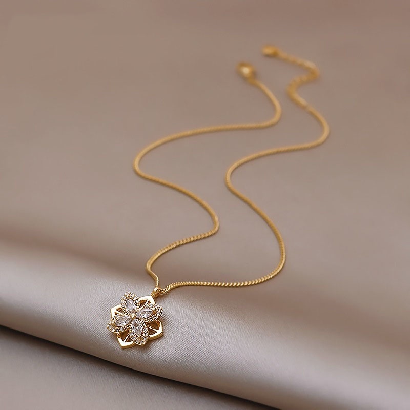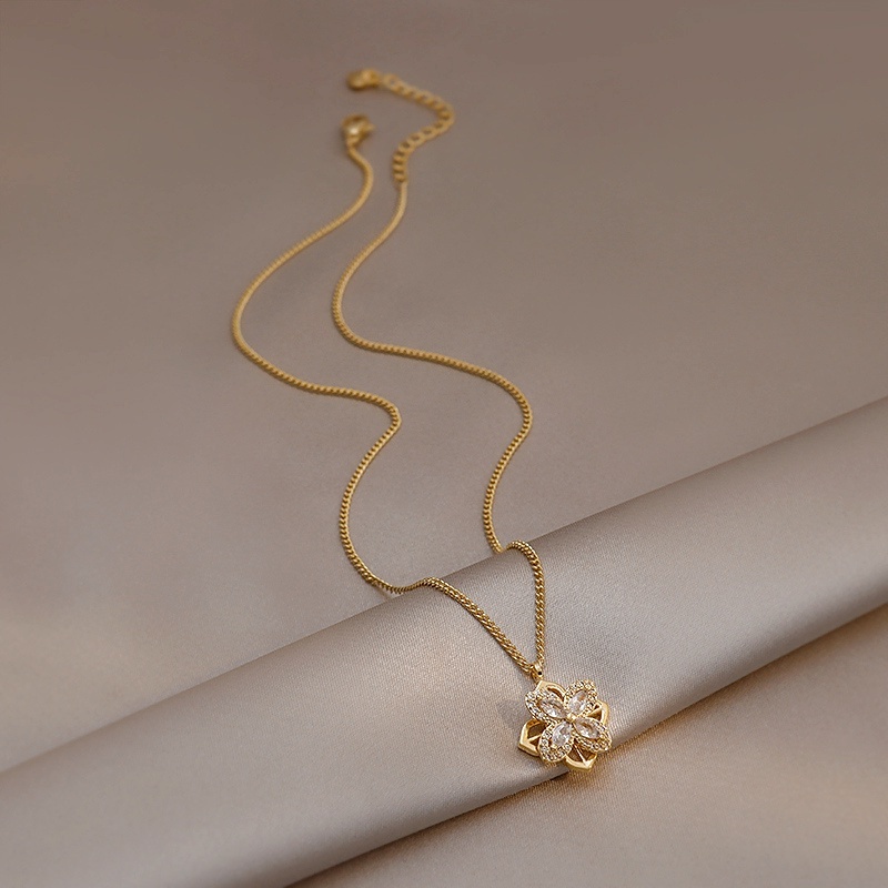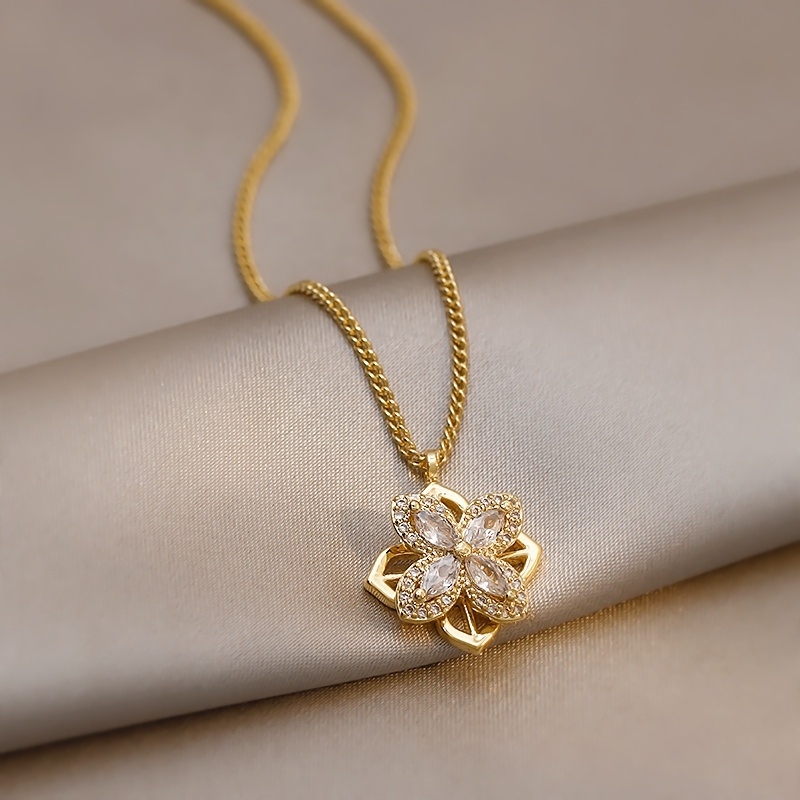 Kalung titanium tahan karat bunga zirkon yang dapat diputar untuk pesta pakaian sehari-hari wanita