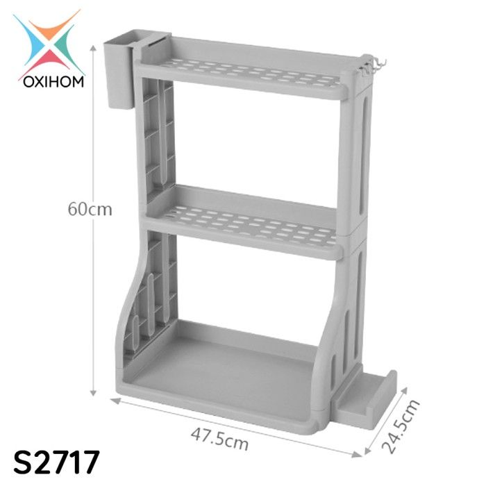 Oxihom Rak Dapur Susun Plastik Tempat Penyimpanan Kamar Mandi 3 Susun - S2717 Abu Abu