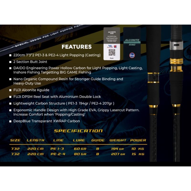 Joran Pancing Daido Zeus Popping 220 Cm Pe 1 3 Carbon