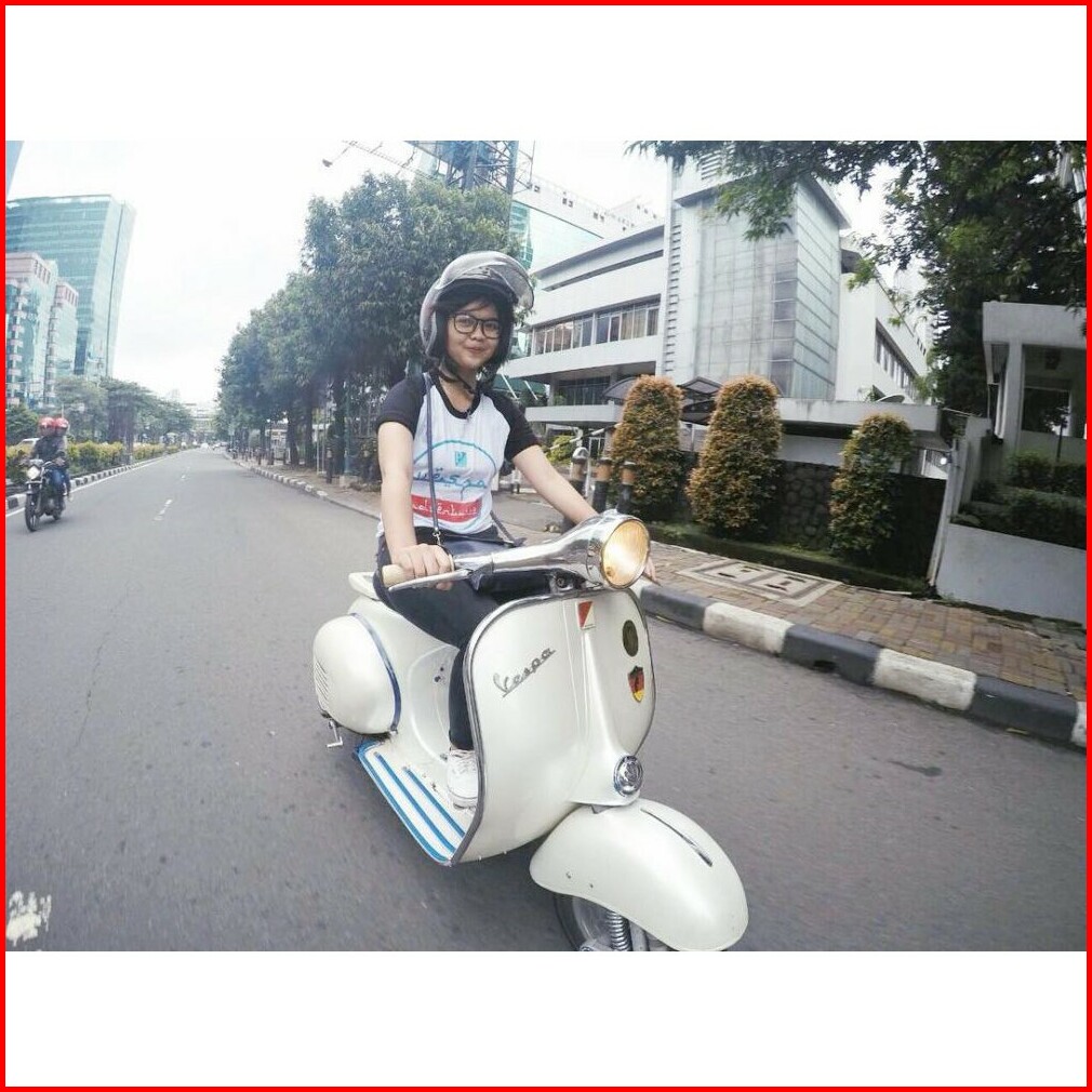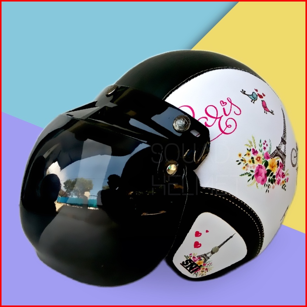 Helm Bogo Retro Classic Osbe Paris Vespa Girl Warna Putih Lis Hitam