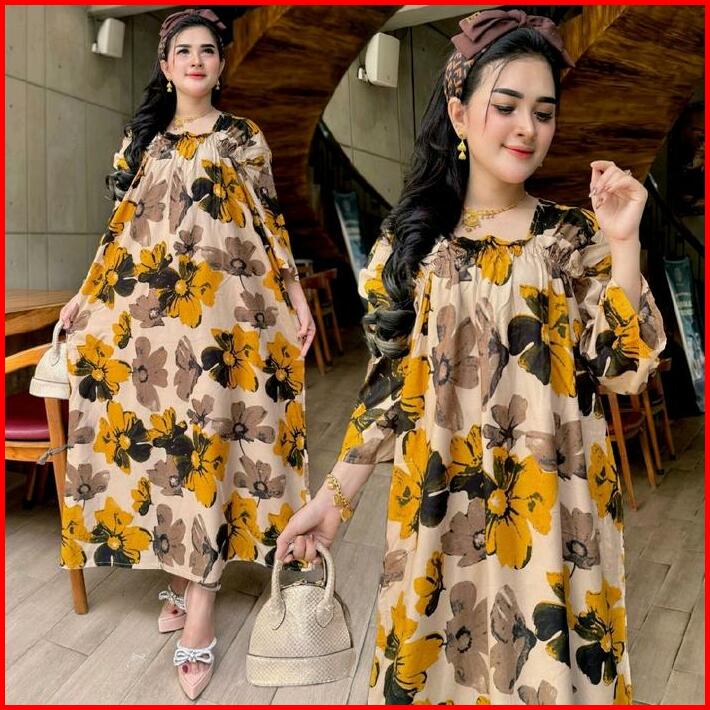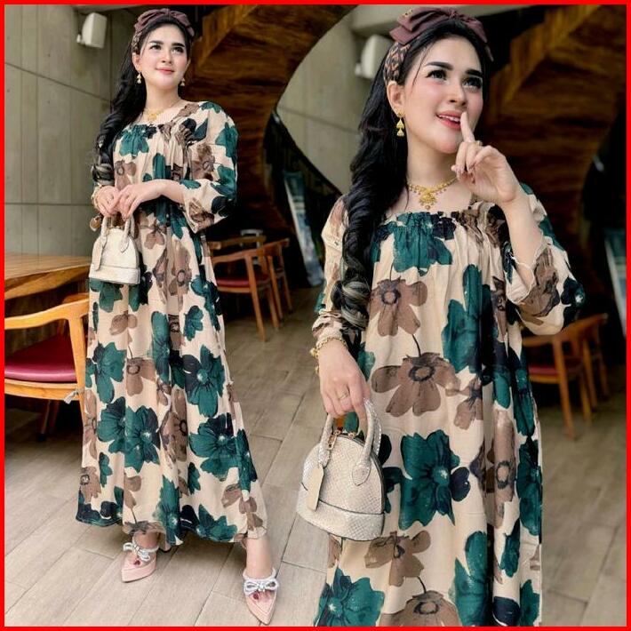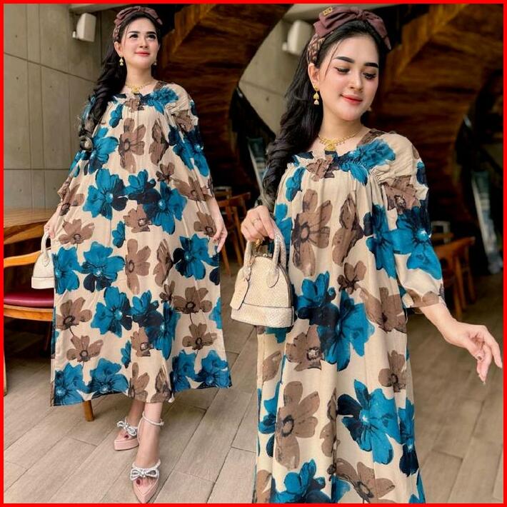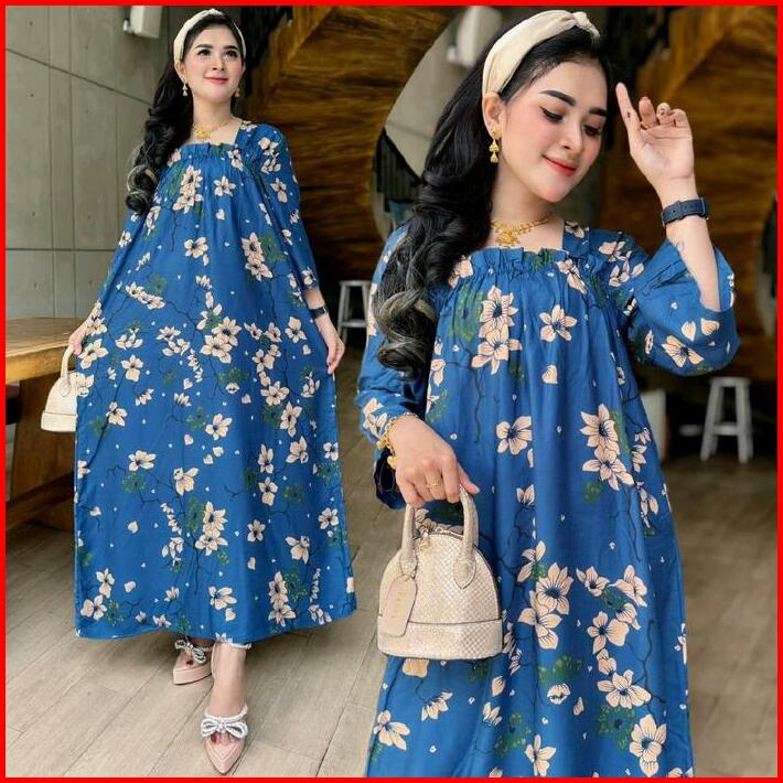 Longdres Fuji Daster Panjang Motif Bunga Cantik Kekinian Tebal Rayon Karet Wanita