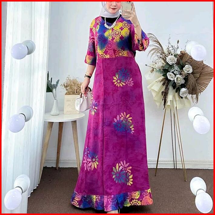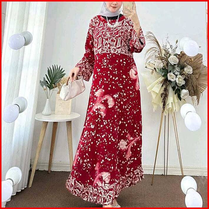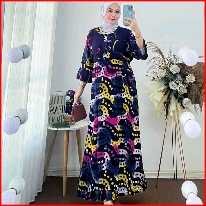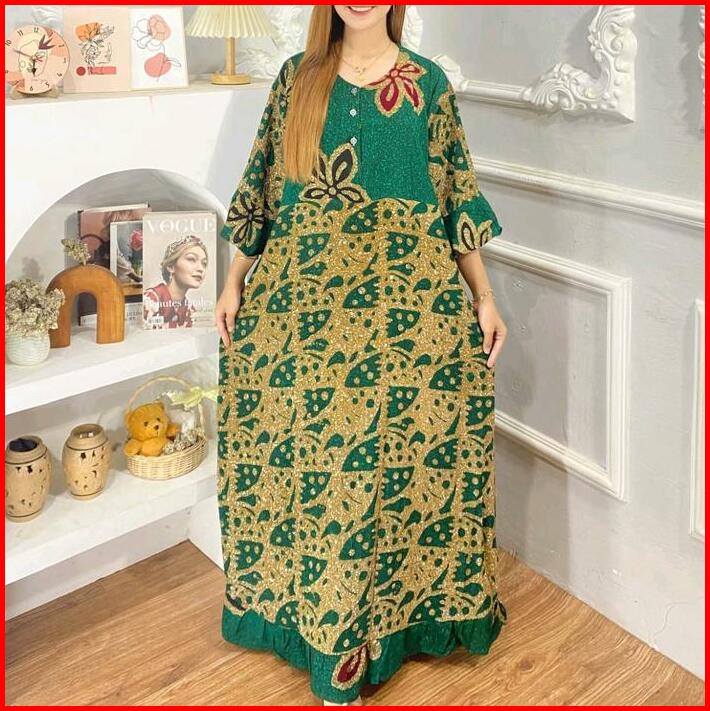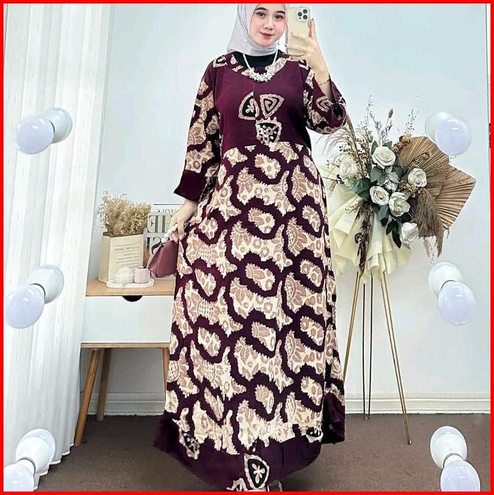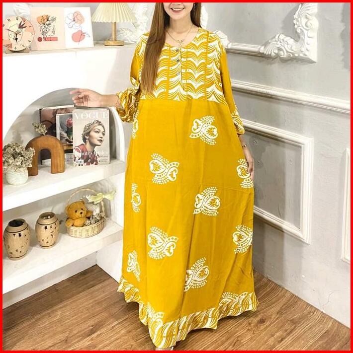 Daster Maura Jumbo Batik Cap Pekalongan Wanita Panjang Lengan 7 8 Lingkar Dada 120 Cm Dress Bumil Sletting Depan Busui F