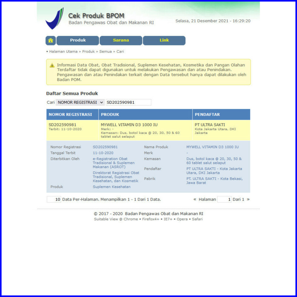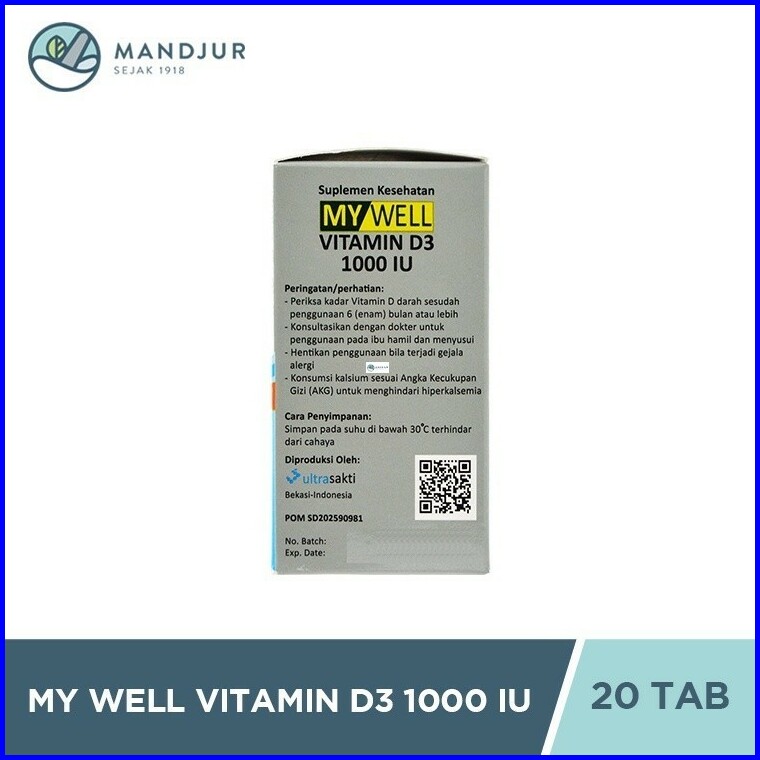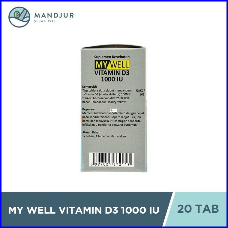 My Well Vit D3 1000 Iu 20 Tablet - Suplemen Vitamin D 1000 Iu