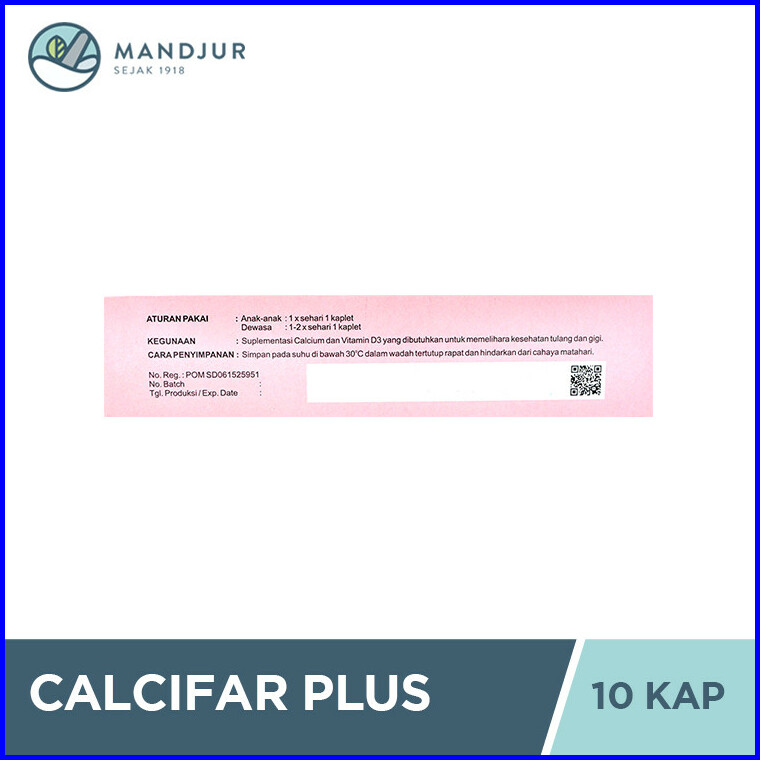 Calcifar Plus 10 Kaplet - Suplemen Kalsium Dan Vitamin D3