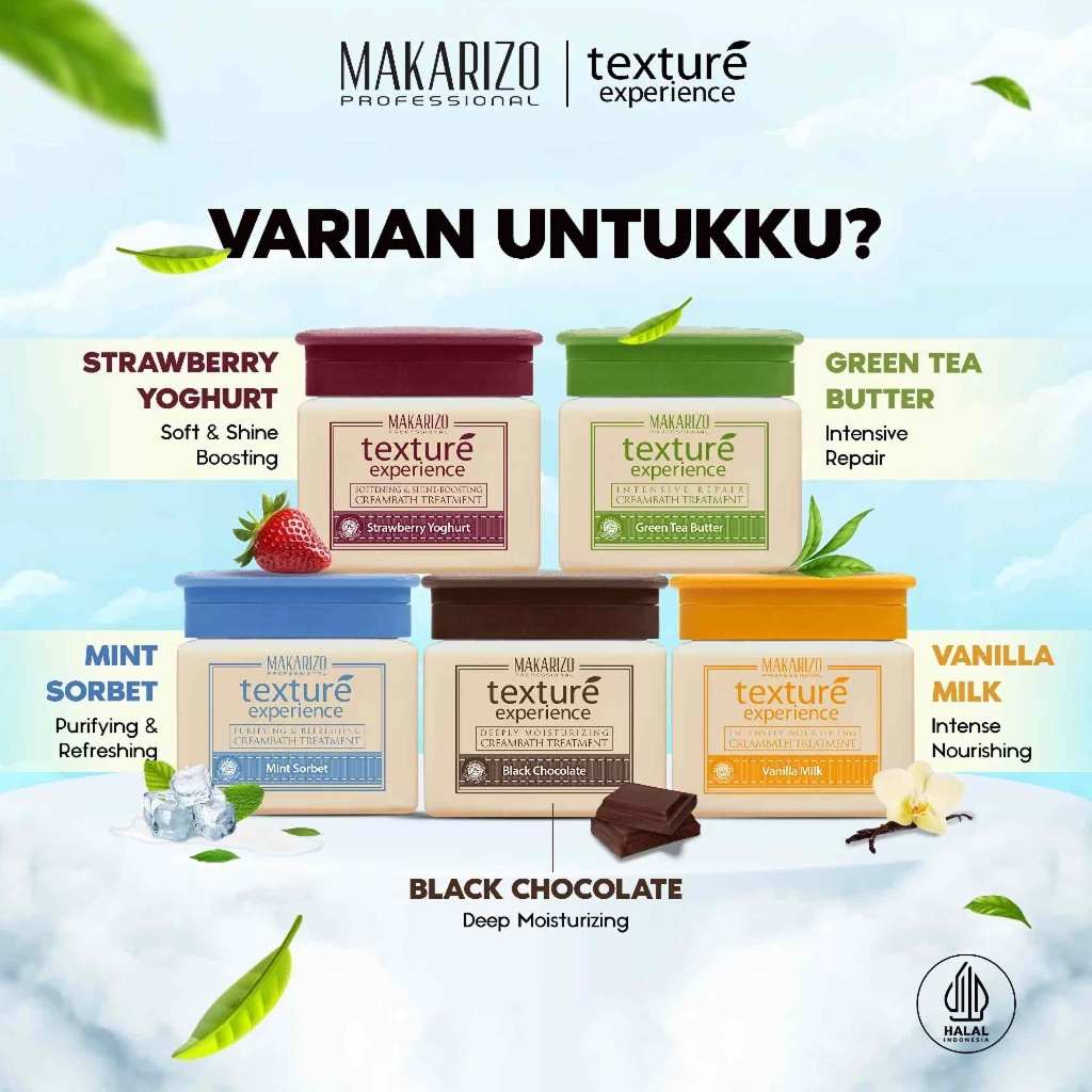 MAKARIZO PROFESSIONAL - Texture Experience Creambath Treatment ( 500 ml ) - Perawatan Rambut Black Chocolate | Strawberr