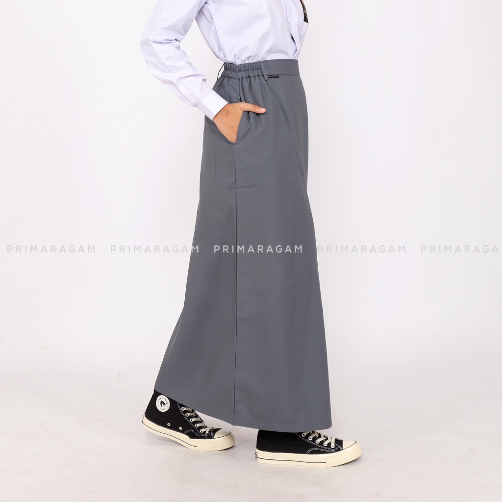 seragam sekolah sma Primaragam Rok Seragam Sekolah Sma Span Panjang Abu Abu Belah Satu Depan Pinggang Karet terlaris