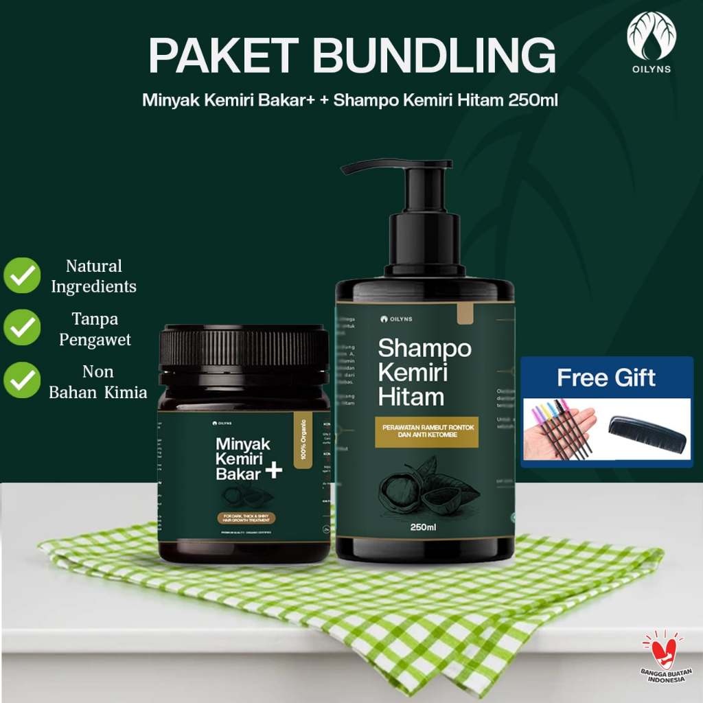 [PAKET BUNDLING] Minyak Kemiri Bakar PLUS & Shampo Kemiri Hitam 250ml - Haircare Melebatkan Rambut