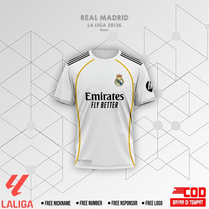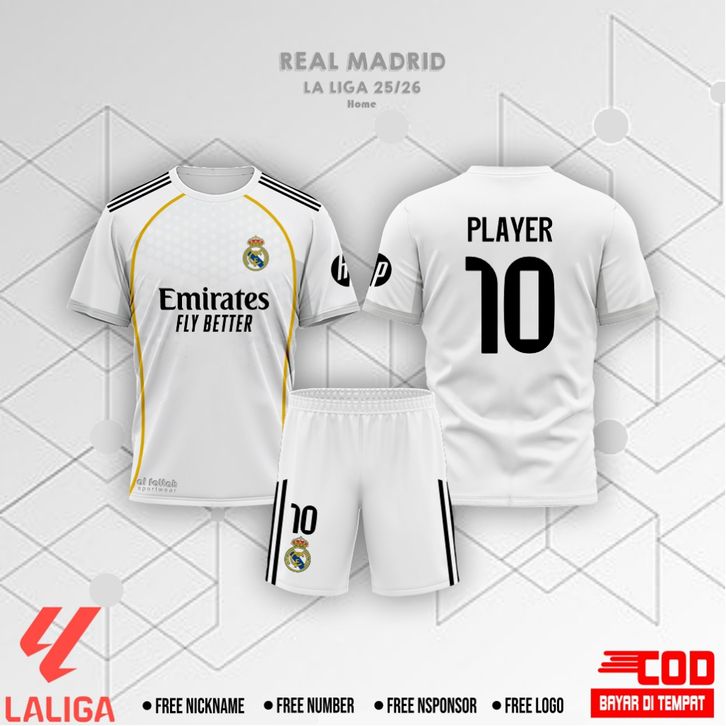 JERSEY REAL MADRID 2025/2026 FULL PATCH CHAMPION 15 HOME DEWASA ANAK SETELAN BAHAN DRYFIT FULL PRINTING