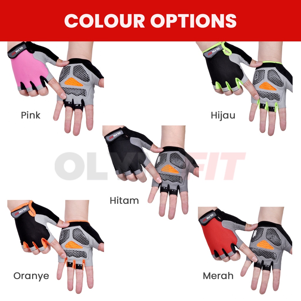 OLYM.FIT Sarung Tangan Olahraga Setengah Jari Fitness Sepeda Gowes MTB SILICONE GEL Sport Gym Gloves Anti Slip S M L XL