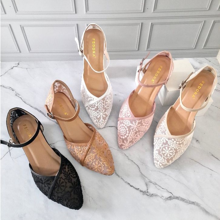[FEDORA] Calista Heels - Sendal Hak Tahu Brukat Heels Wanita 3cm