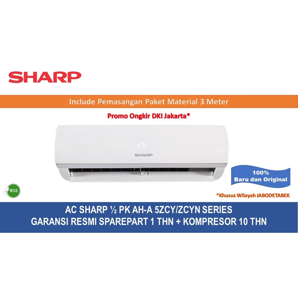 AC +PASANG AC Sharp 1/2 PK AC 1/2 PK AH 5ZCY / 5BEY Low Watt R32