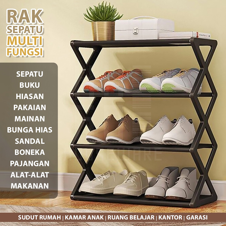 HUGO Rak Sepatu Portable 4 Susun Tempat Sepatu Sandal Serbaguna Minimalis Stainless Steel Kokoh Best Seller