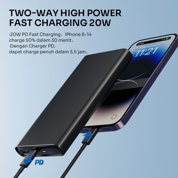 Powerbank 10000mAh Dual Port 20W PD Fast Charging Quick Charging 3.0 Power bank Gradasi RT11 Original - Garansi 1 Tahun