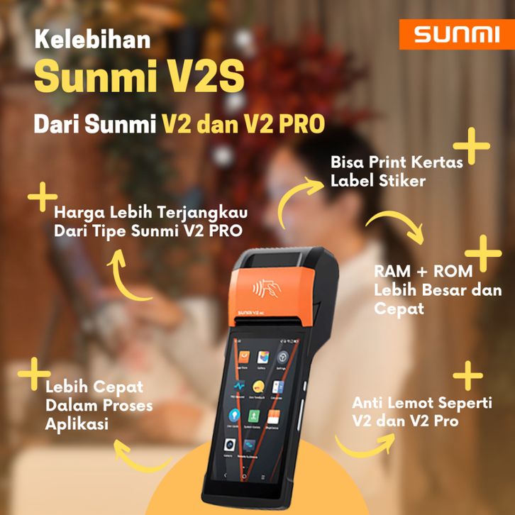 Mesin Kasir Android Portable SUNMI V2 2+16 4G Support Semua Aplikasi Kasir dan Aplikasi Merchant Unit Baru Masih Tersege