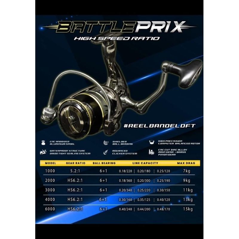 Reel Pancing Daido Battleprix Spin 1000 2000 3000 4000 6000 Power Handel