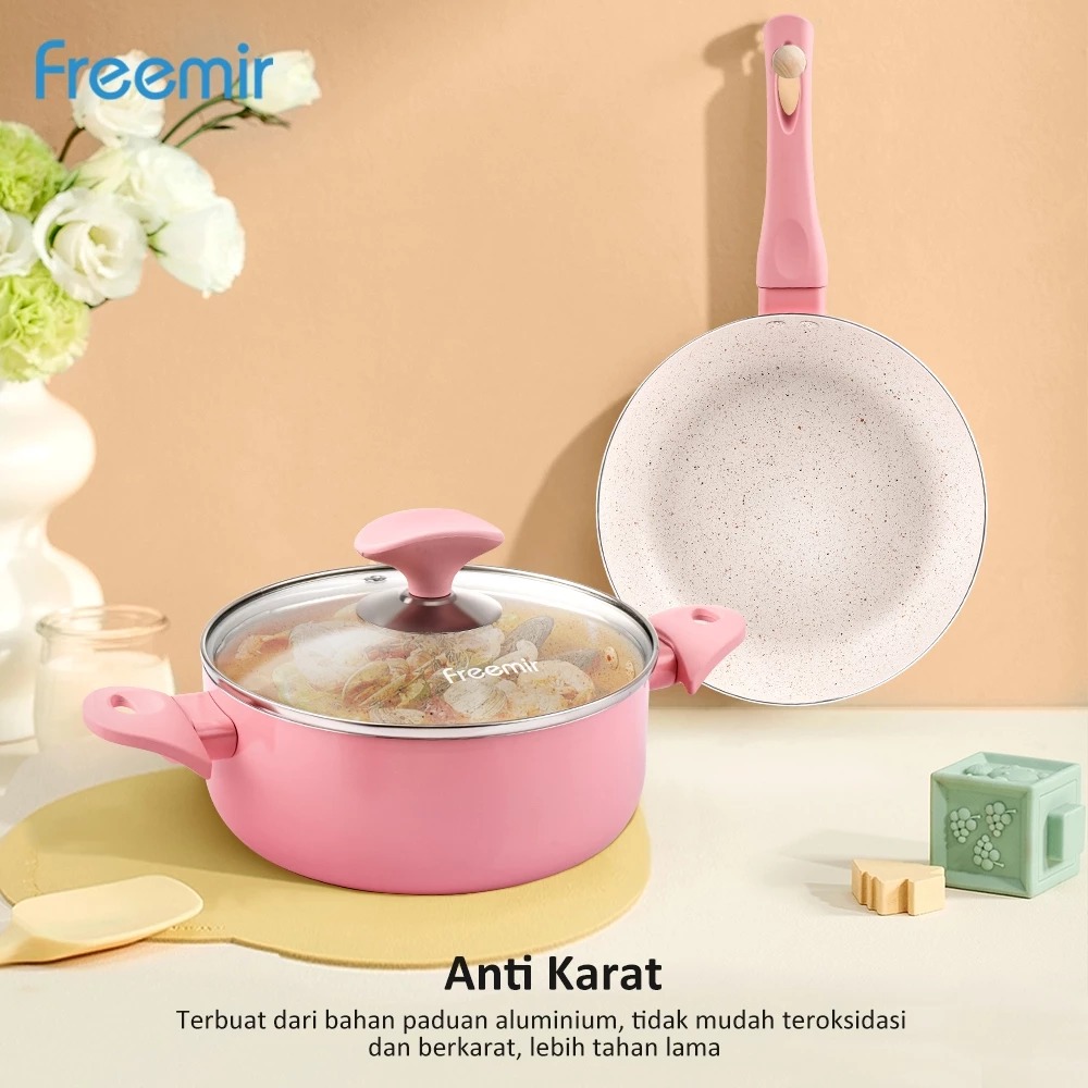 Wajan Teflon freemir Sakura Pink Series 20/18cm Mpasi Approve Anti Lengket