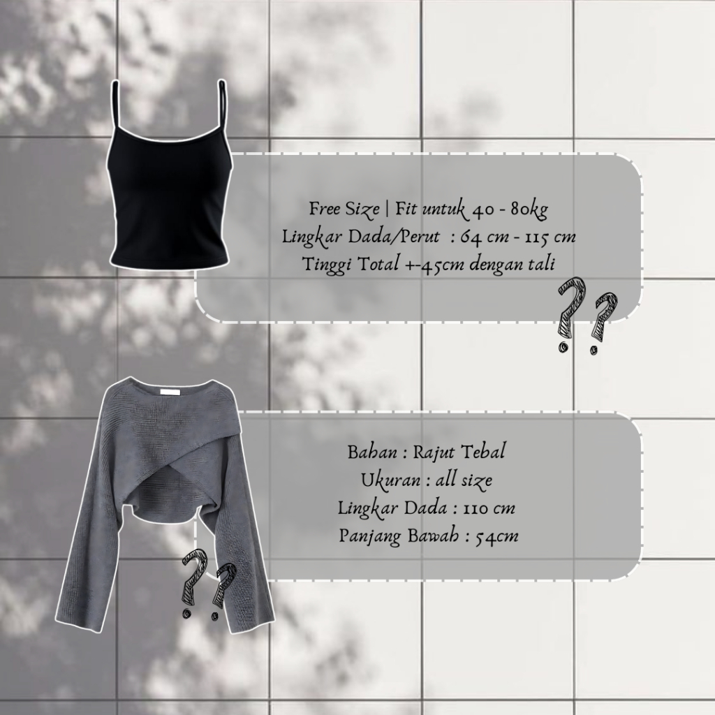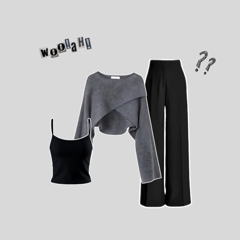 3In1 Dreamy OOTD Vest Silang Grey With Scuba Highwaist Pant Black Setelan Wanita Kekinian Hangout Style Outfit Set Korea
