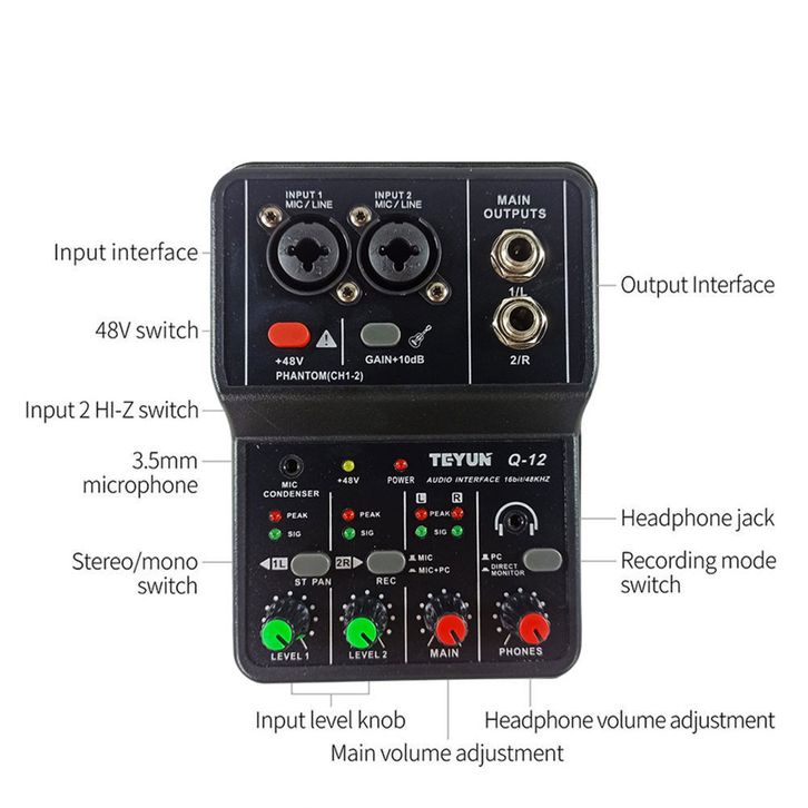 TEYUN SOUND CARD USB MINI PORTABLE 2 WAY DRIVER FREE MIXER - Q12 ORIGINAL 99 SQUARE